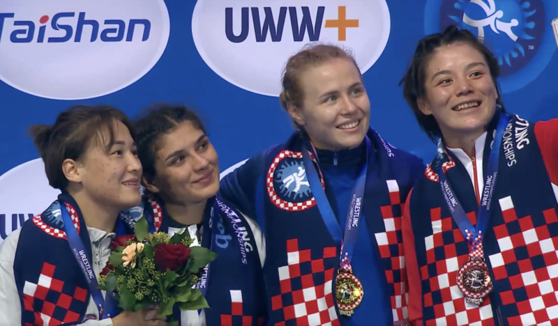 中国摔跤女队以1银3铜收官,获得本届世锦赛女子自由式摔跤团体积分第三名。