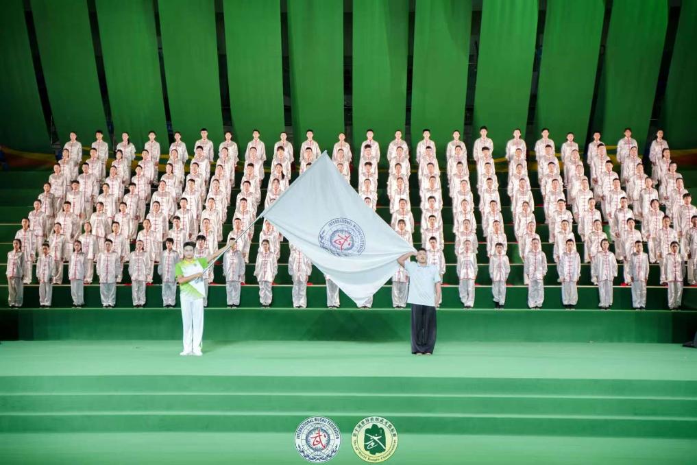 当日,开幕式在气势恢宏的《茶武迎客》欢迎仪式中拉开帷幕,茶艺、非遗武术与智能机器人同台演绎,展现古老文化与现代科技的精彩对话。随后,来自各国和地区代表队的队旗和队牌依次入场,象征着武术精神跨越国界的传承与交融。