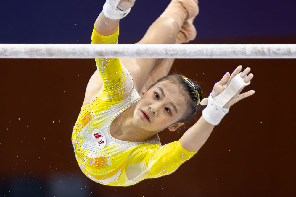 11月16日,福建队选手邱祺缘在女子高低杠决赛中。新华社记者 杜子璇 摄