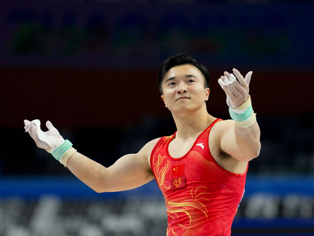 东京和巴黎奥运会双料冠军、“吊环王”辽宁队刘洋以流畅的翻转、稳稳的落地,取得14.940分的成绩,毫无悬念地卫冕男子吊环冠军。广西队兰星宇、江苏队尤浩分别摘得银牌、铜牌。