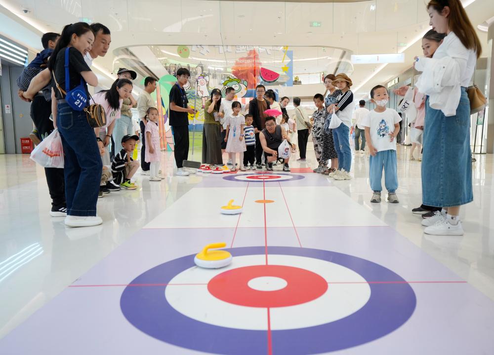 ↑2025年5月31日,银川市民参加大众旱地冰壶挑战赛。新华社记者 王鹏 摄