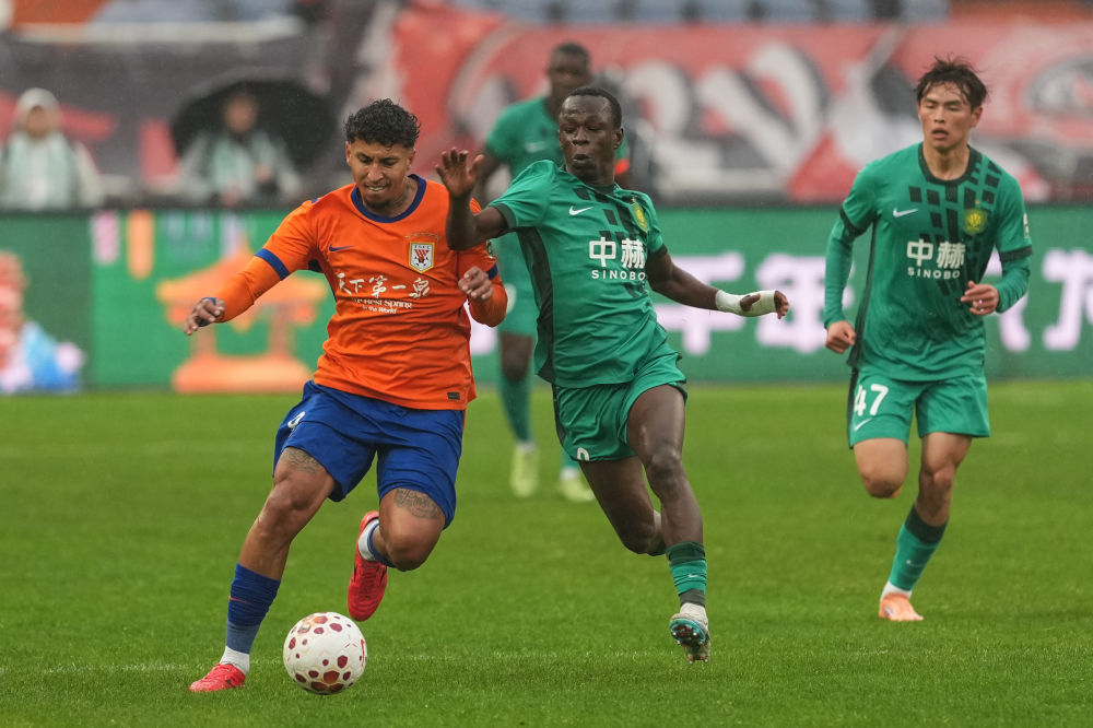 “京鲁大战”在雨中展开,湿滑的场地给双方造成一定困扰,两队均较为谨慎,上半场以0:0收场。